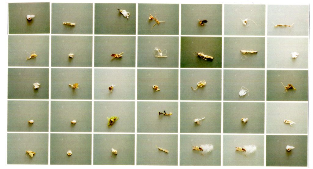 A peine visibles, poussières bricolées, 1997, fragments d’origine naturelle, fil de coton