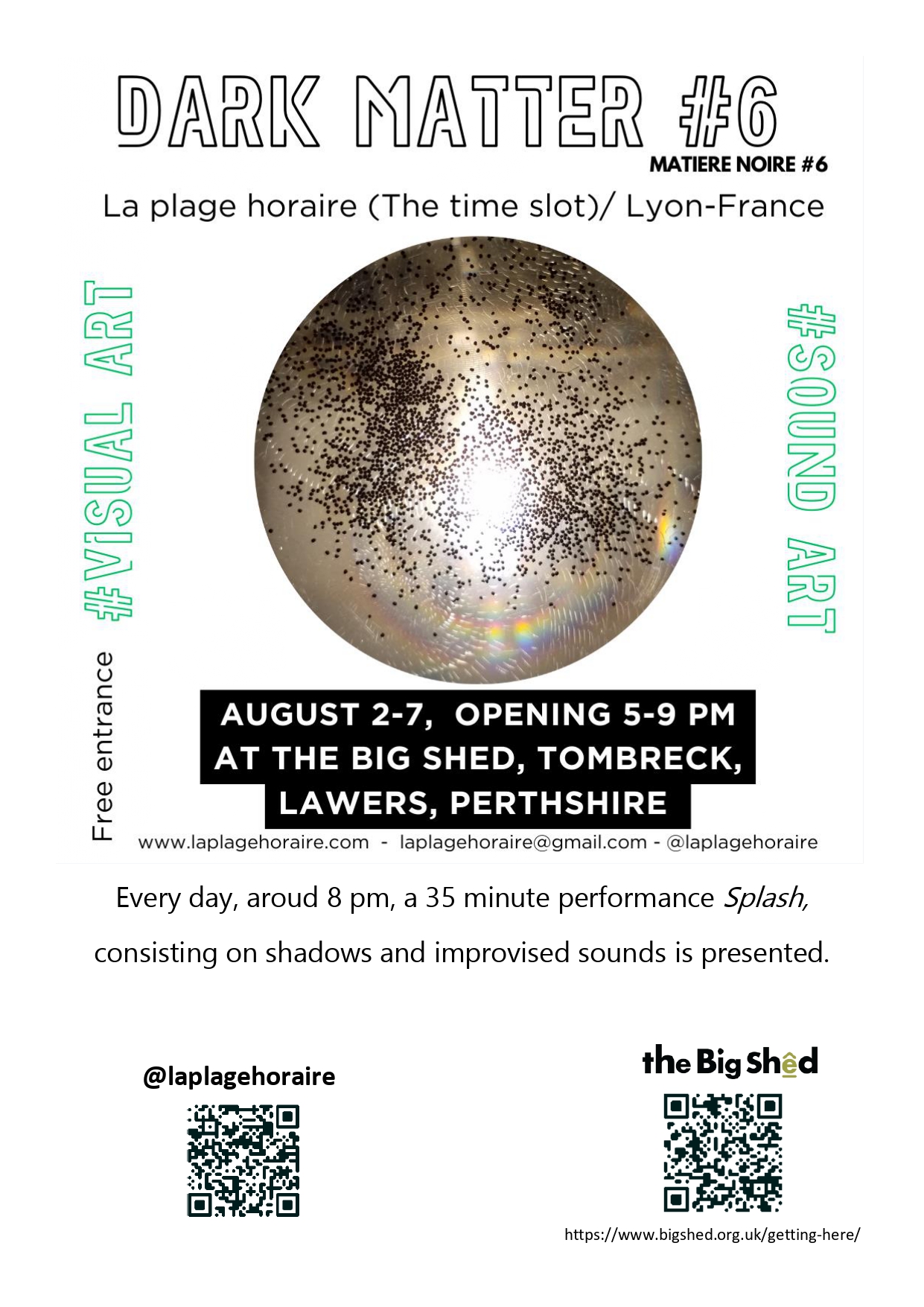 will take place at The Big Shed every day from 2nd to 7th August 2024, 5 PM to 9 PM.(It would be more comfortable to let us know you are coming by sending an email to laplagehoraire@gmail.com.)